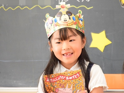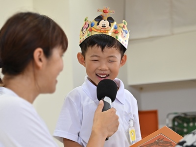 9月生まれさんがステージに上がり、質問に答えます。元気に答えてくれましたよ。
