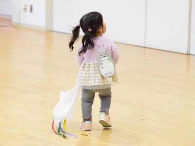 そして、レジ袋を使って、凧も作りました!元気いっぱい走り回って、凧を飛ばします。